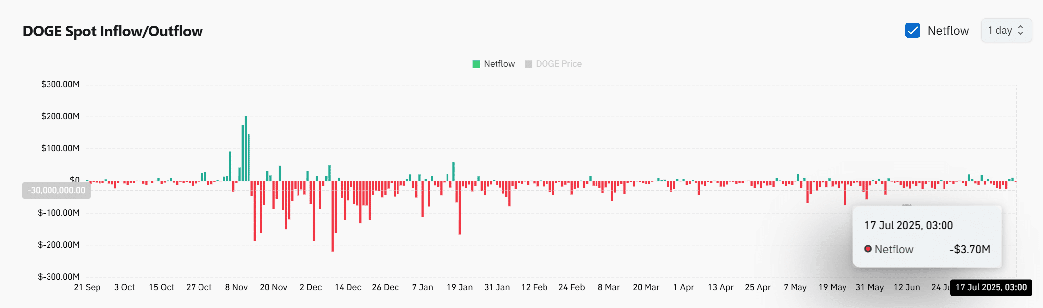 Therefore, as long as these outflows persist, DOGE could experience a supply squeeze that supports upward price movement, especially if new demand emerges from retail or institutional buyers.