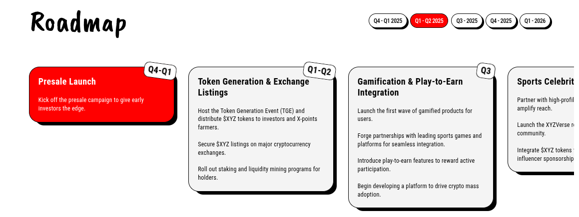 A well-defined roadmap that can be understood by novice investors is a top priority for any project looking to establish credibility. XYZverse has indeed published a transparent roadmap through 2025 which outlines upcoming milestones, expectations for major exchange listings, staking opportunities, and ecosystem expansion, among others.