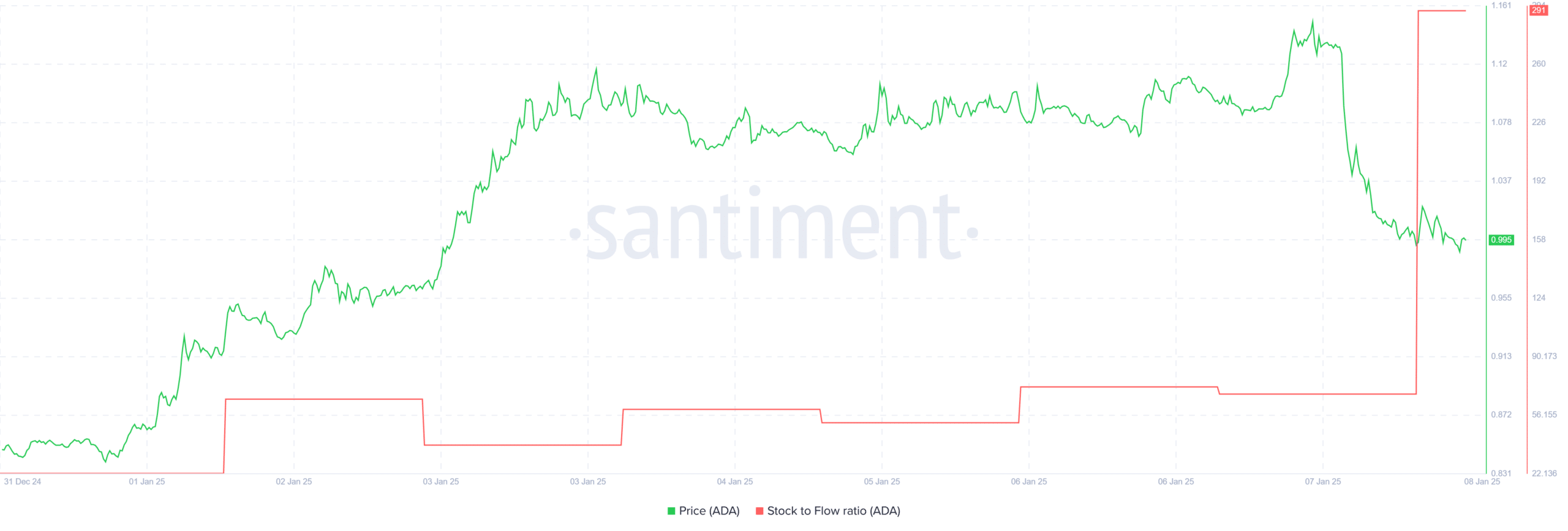 For starters, we can see this bullishness through the rising scarcity. This is evidenced by the fact that ADA’s Stock to Flow Ratio (SFR), has risen to 291.37.