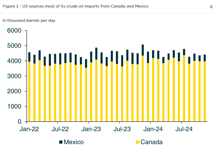 “This corresponded to more than 60% of total US crude oil imports. Mexico accounted for around 470 thousand barrels per day or 7% of daily US crude oil imports,” Fritsch said.