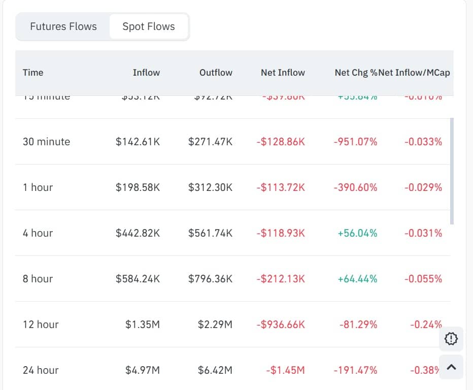 As a result, Spot Netflow fell 191% to -$1.45 million, a clear sign of aggressive spot accumulation. Increased outflows usually reduce the supply in circulation, further thinning market pressure.