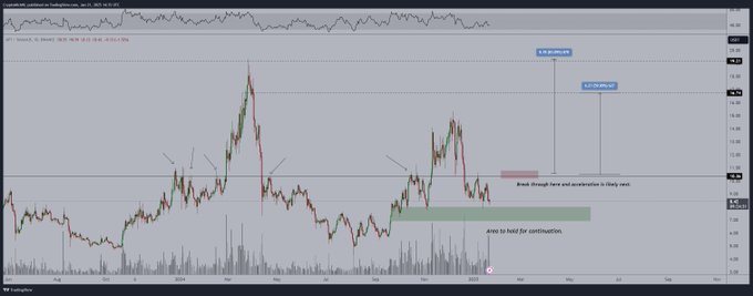If APT successfully clears the $10 resistance, it could pave the way for further advances toward $12.50 and $15. Crypto analyst Michaël van de Poppe stated,