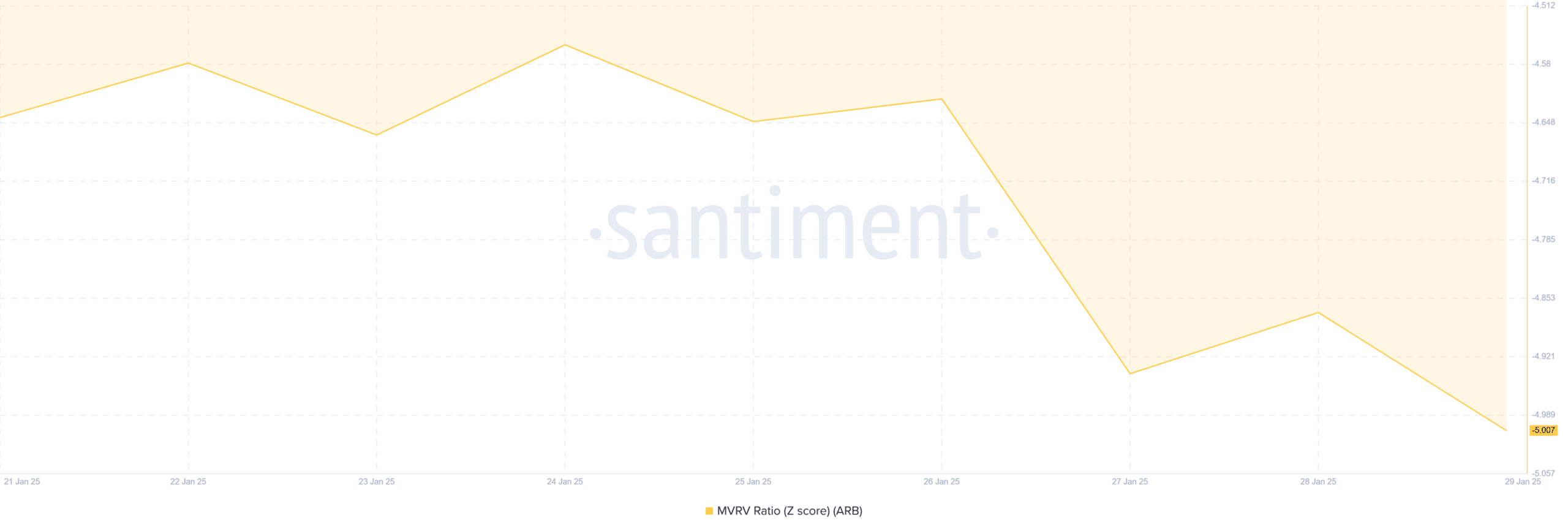 Additionally, Arbitrum’s MVRV Ratio has experienced a sharp decline to -5.01. When MVRV declines to negative territory, it suggests capitulation, with holders selling at a loss.