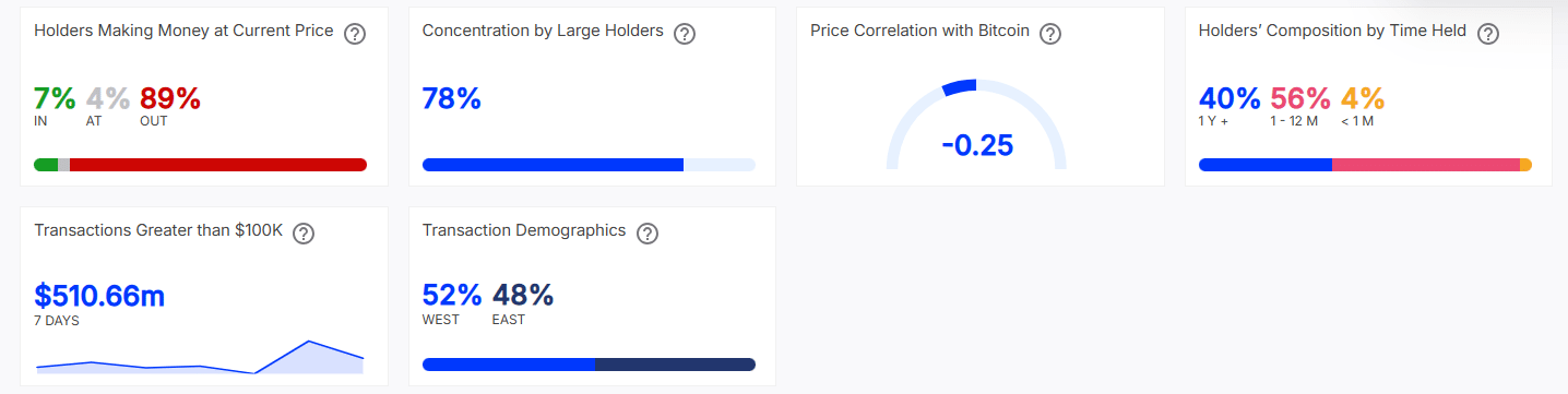 At this price level, only 7% of ARB holders are in profit. This implies that 89% of holders are at a loss, while only 4% are at the money.