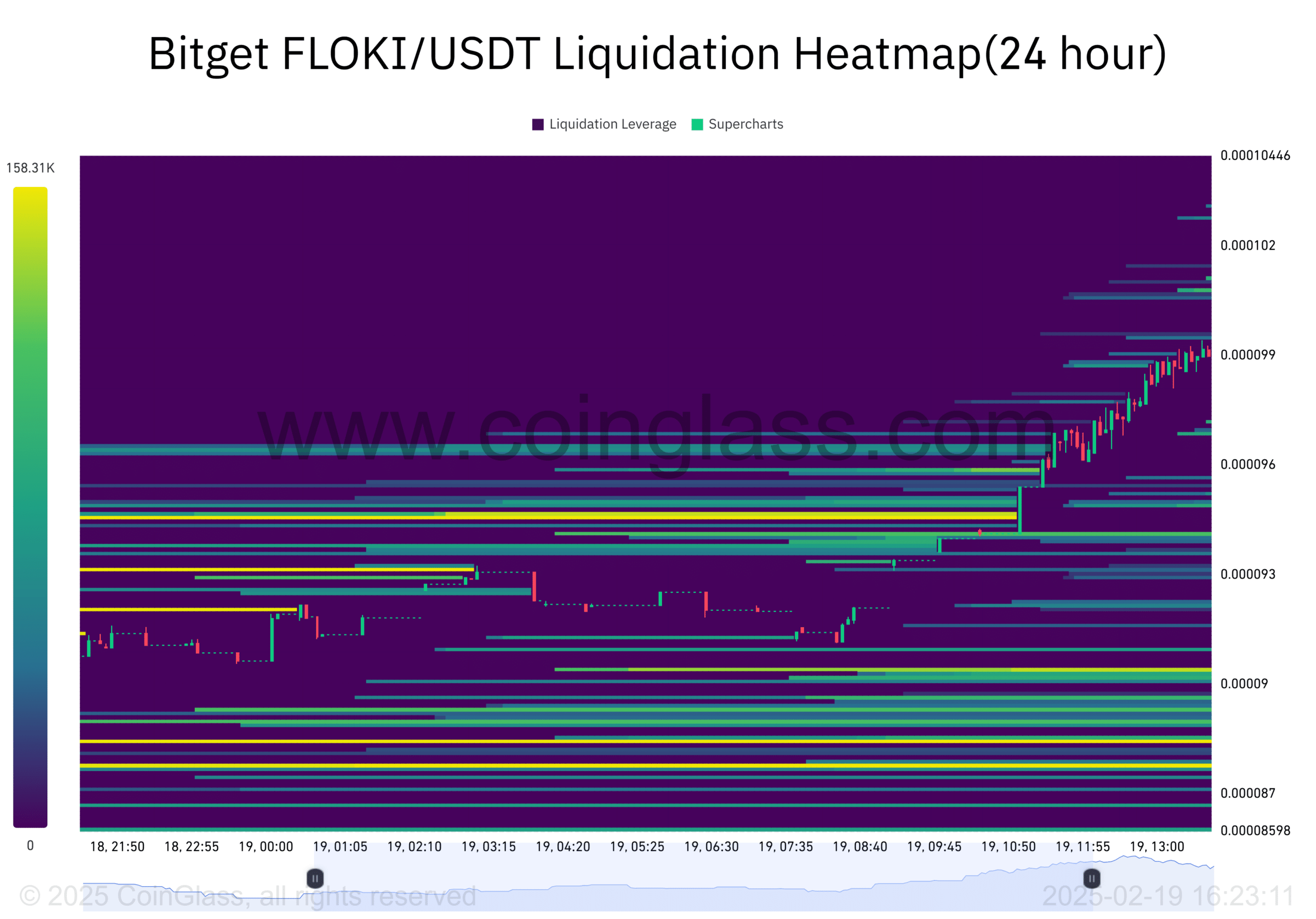 However, the increasing liquidity in this zone also means that the price could face resistance in the short term. If FLOKI manages to hold this support zone, it will likely trigger further bullish price action.