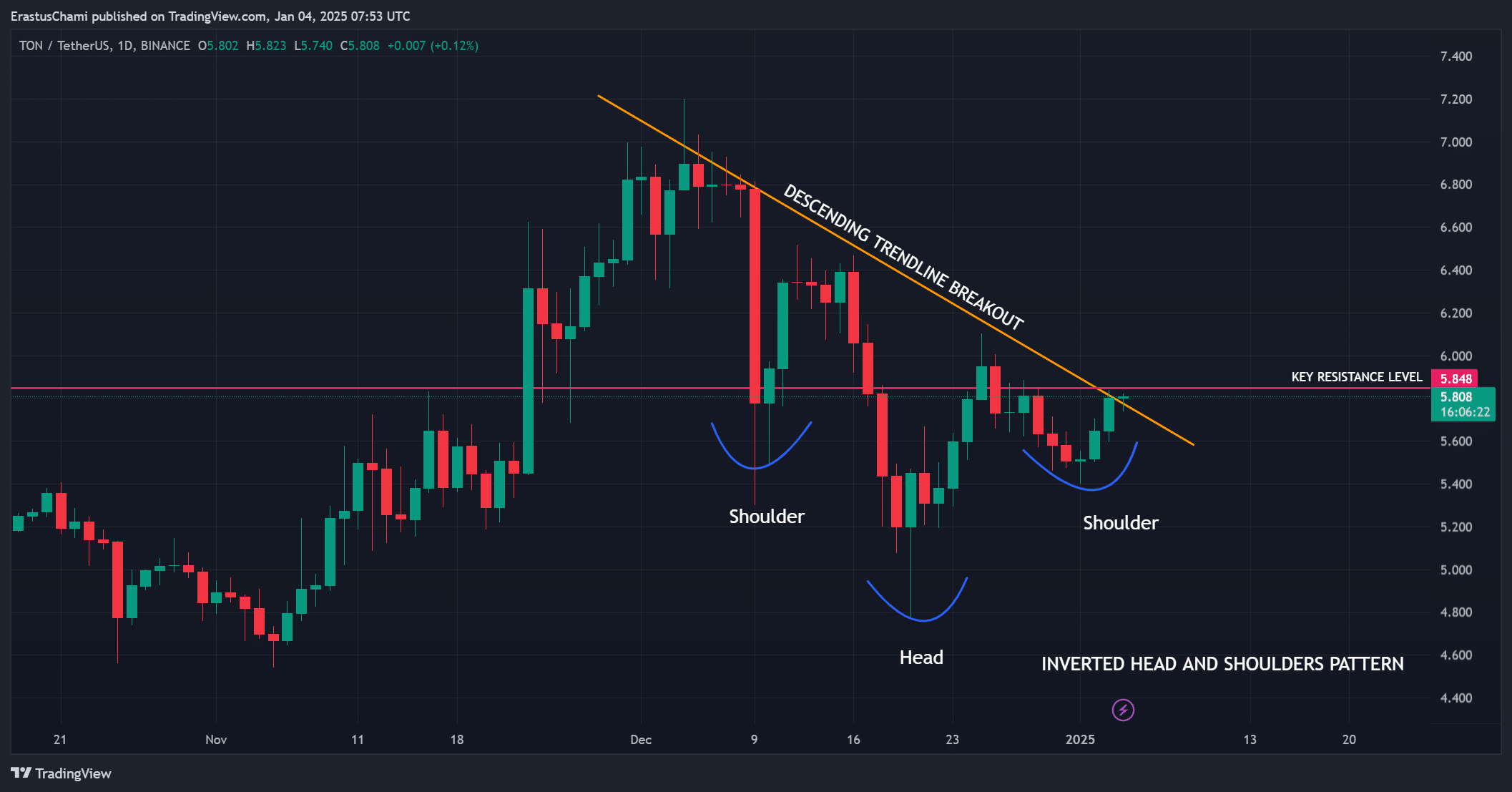 The inverted head and shoulders pattern is a widely recognized bullish signal, indicating a potential reversal in TON’s price trajectory. The breakout above the descending trendline further validated the positive sentiment – A sign of increasing buying pressure.