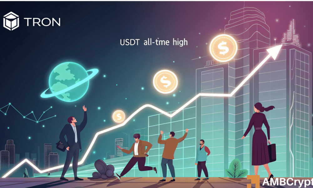 • TRON’s USDT supply climbed to an all-time high, marking a significant milestone in the blockchain’s growing dominance