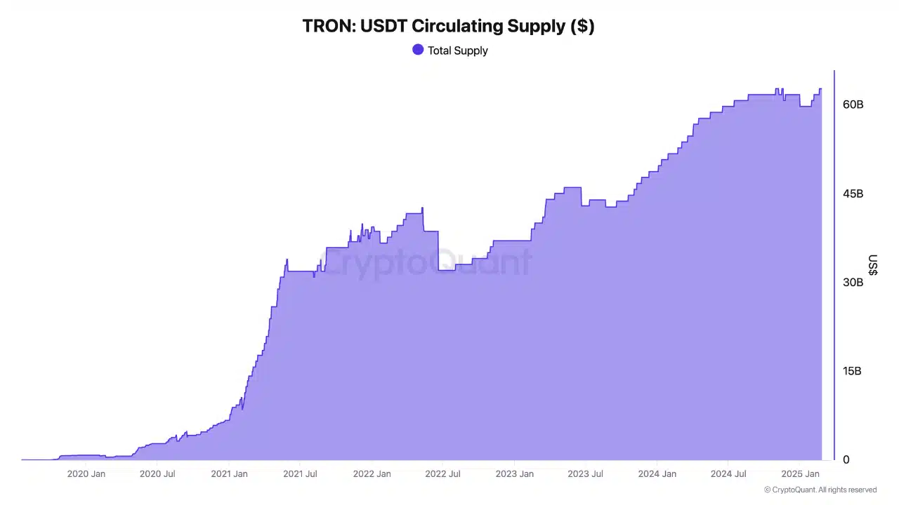 USDT’s supply on TRON has expanded significantly, surpassing historical levels. Such an uptick usually reflects heightened adoption, with traders favoring it for its efficiency and low transaction costs.