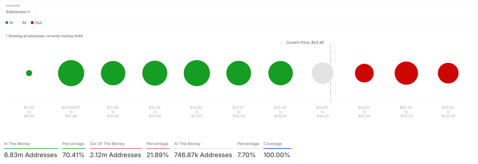Avalanche’s holder data from IntotheBolck showed that 70.41% of addresses holding AVAX were profitable at press time, with the acquisition cost below $43.48.