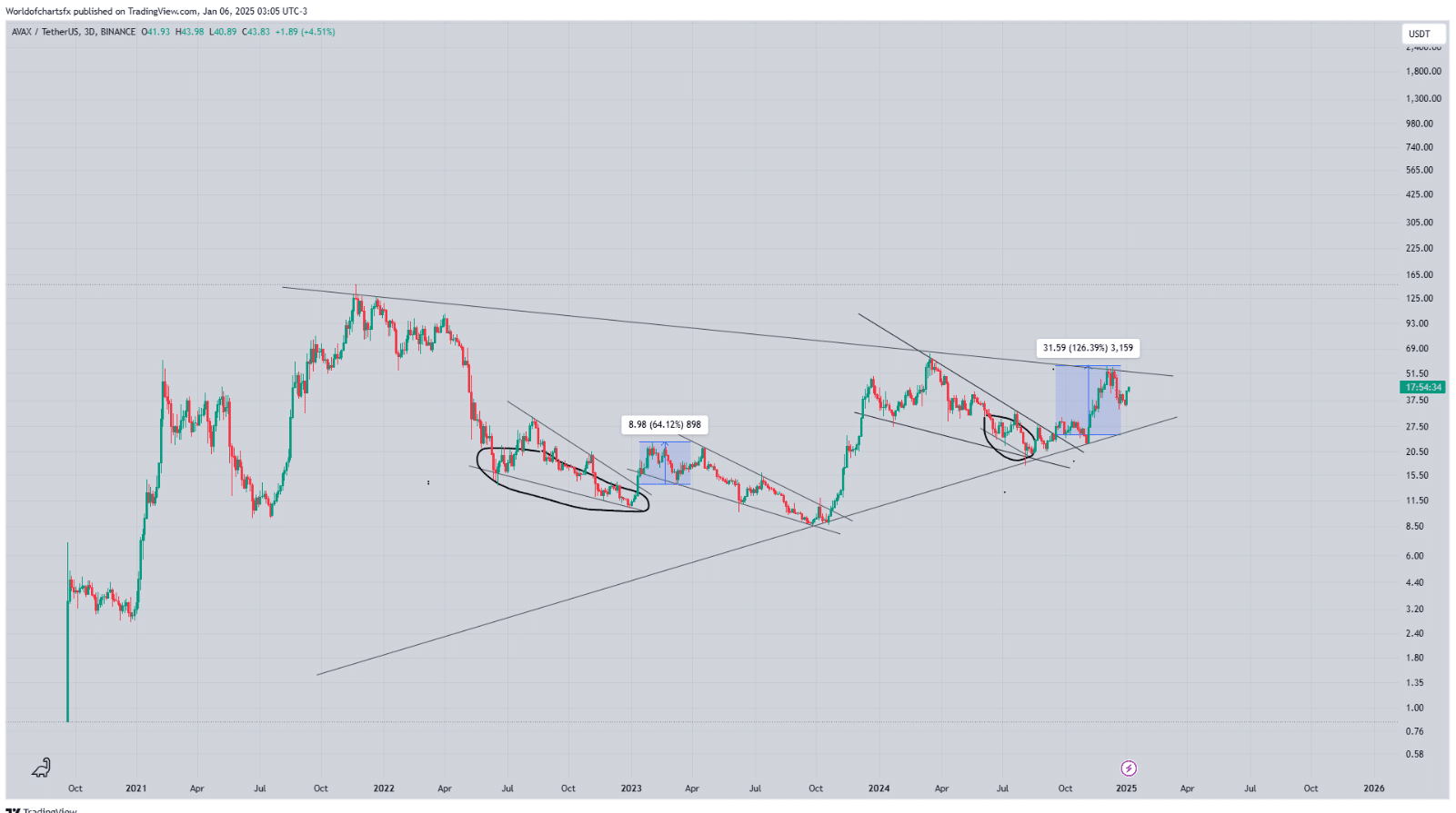 Avalanche was trading near the $44 level, a key resistance zone that could dictate its next price movement.
