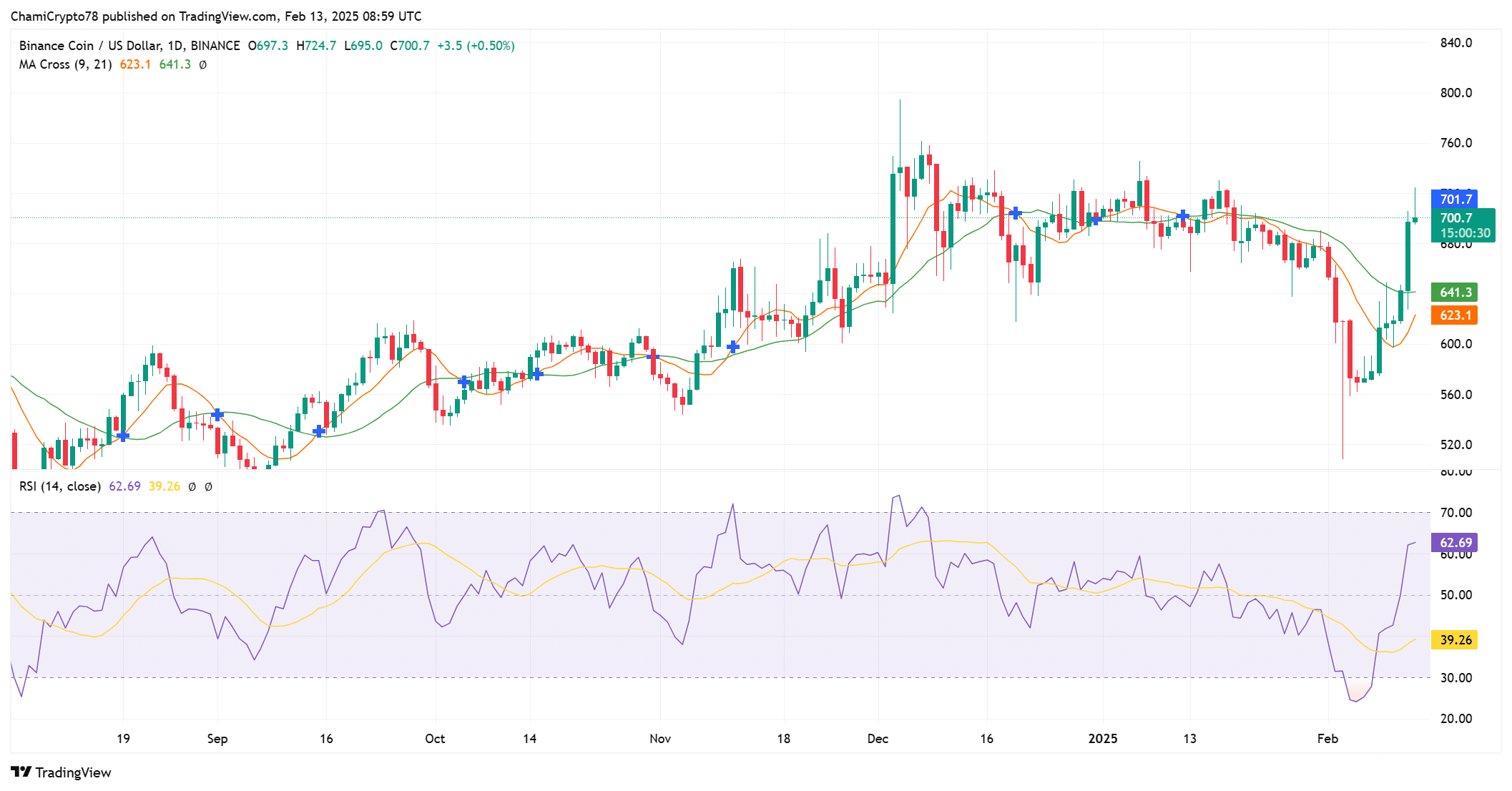 At press time, BNB is trading at $700.48, up by 8.89% in the last 24 hours. However, the big question remains: can this momentum continue, pushing the coin further toward the $720 level?
