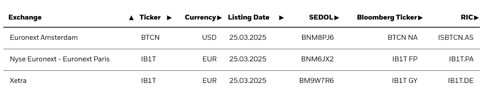 iShares Bitcoin ETP listings. Source: BlackRock