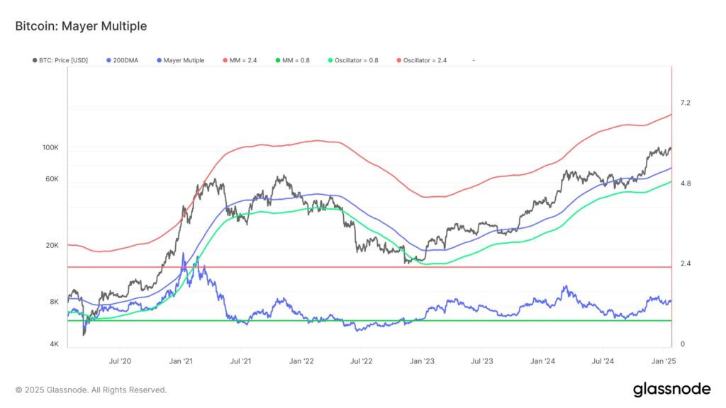In a new post on X, the analytics firm Glassnode has discussed about the latest trend in the Mayer Multiple for Bitcoin. The “Mayer Multiple” here refers to an indicator that keeps track of the ratio between BTC’s spot price and its 200-day moving average (MA).