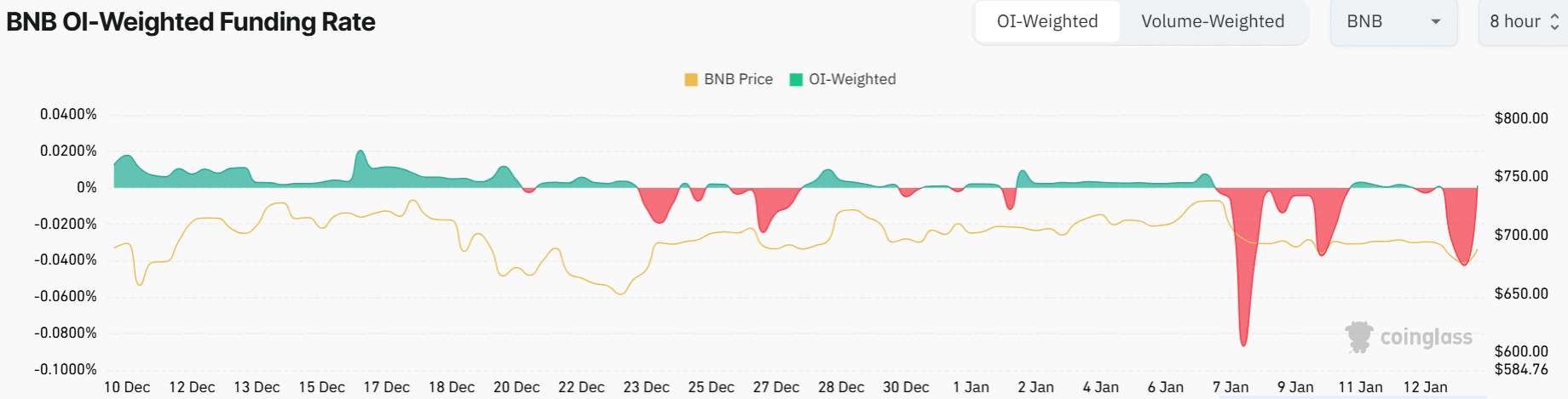 At press time, BNB funding rates had flipped negative. This indicated that short traders are willing to pay funding fees to maintain their positions.