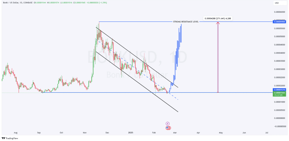 BONK breaks downtrend! could a 271% rally be on the horizon?