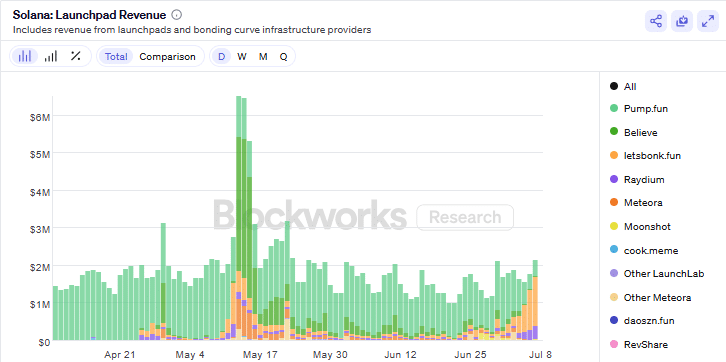 Bonk.fun continued to dominate among Solana launchpads, not only in revenue but also in trading volume, recording $131.3 million compared to Pump.fun’s $43 million.