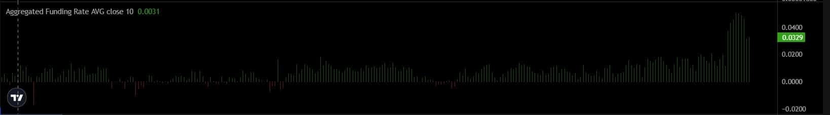 Funding Rates have surged to 0.0329, at press time – still elevated, though slightly down from recent highs – indicating that long traders are paying a premium to stay in position.