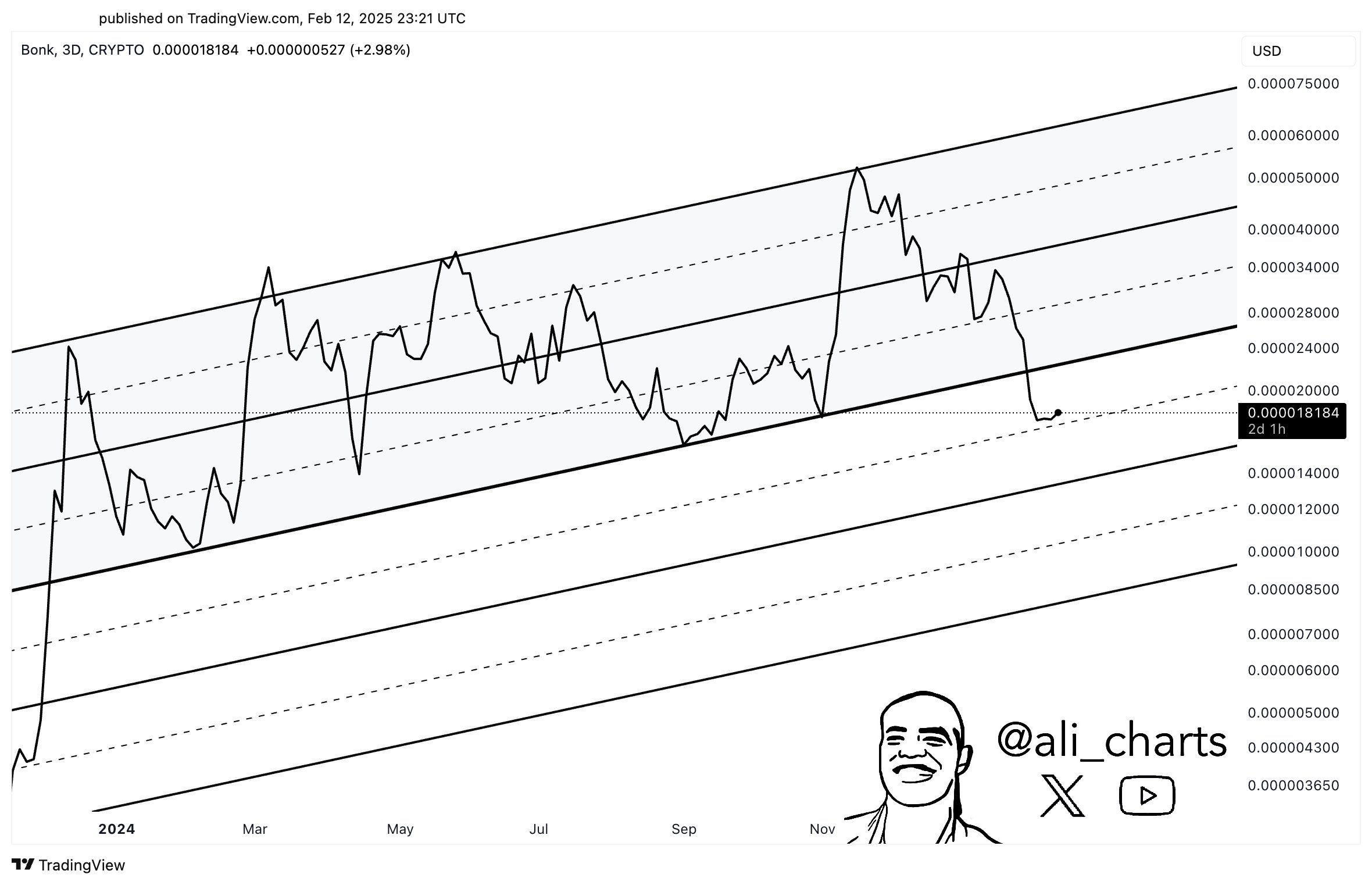- BONK broke out of its previous price structure, potentially setting up a move towards $0.000009