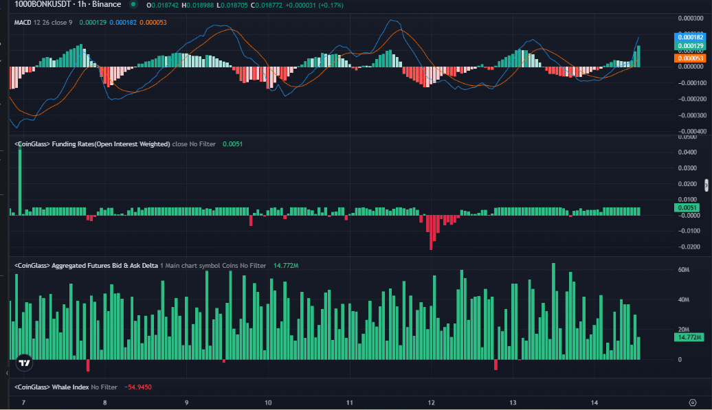 Meanwhile, the bid-ask delta revealed periods where buying interest has exceeded selling interest, suggesting underlying bullish sentiment. These signals, when combined with the structural break in the price and other indicators, alluded to a favorable environment for BONK ahead.