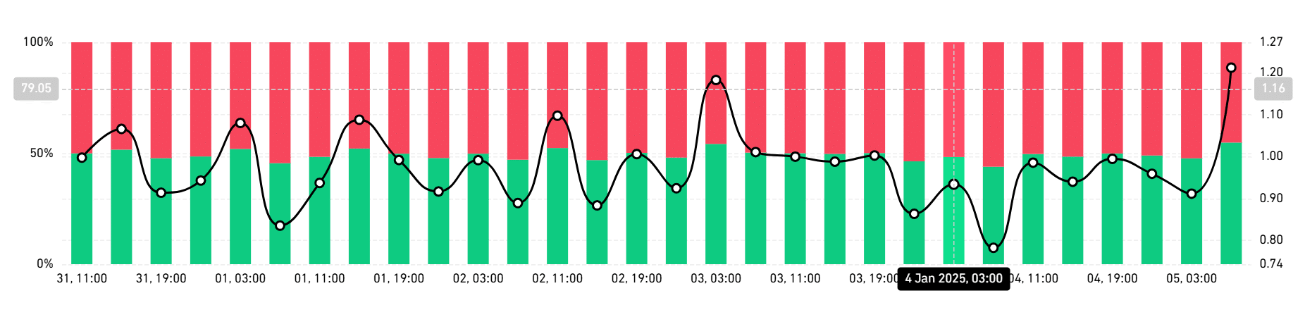 When longs dominate the market, it means most traders are bullish and expect prices to increase.