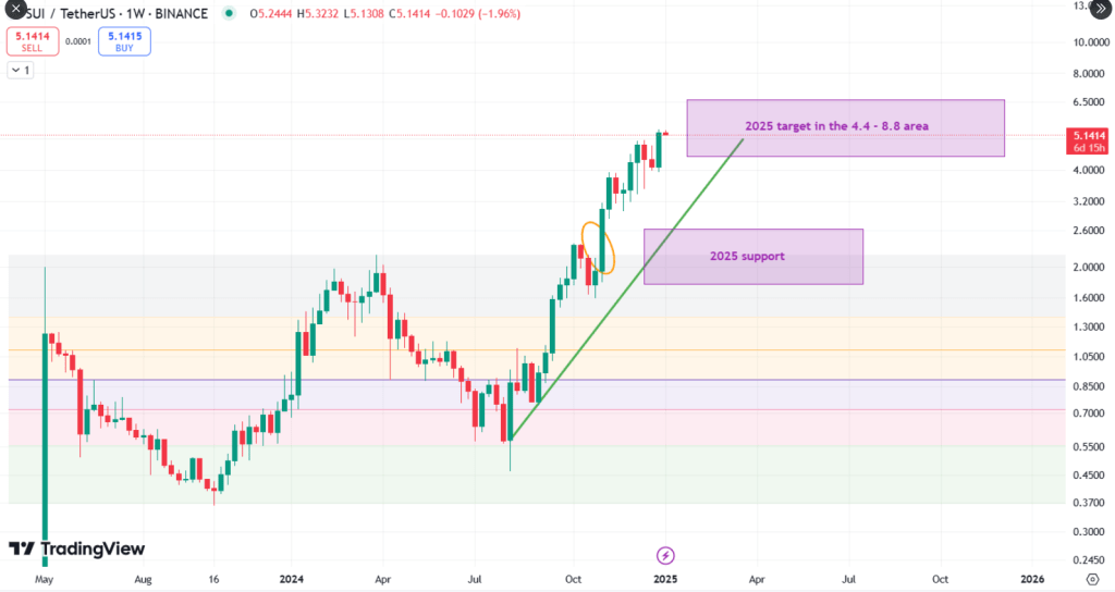 After a stunning 10x rally, SUI’s long-term chart suggests further upside potential in 2025.