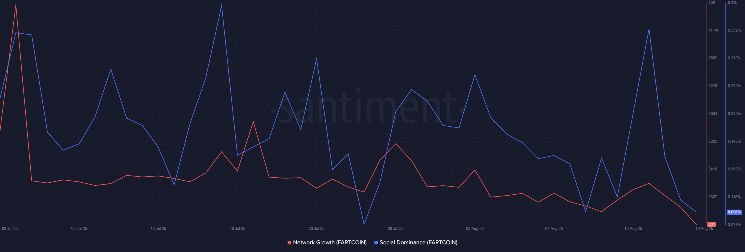 Fartcoin network growth and social dominance weaken further