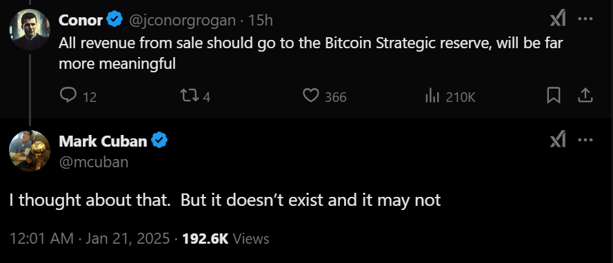 However, some community members have suggested that the US BTC strategic reserve could be more impactful in addressing U.S. debt concerns. Cuban was less optimistic about such an outcome.