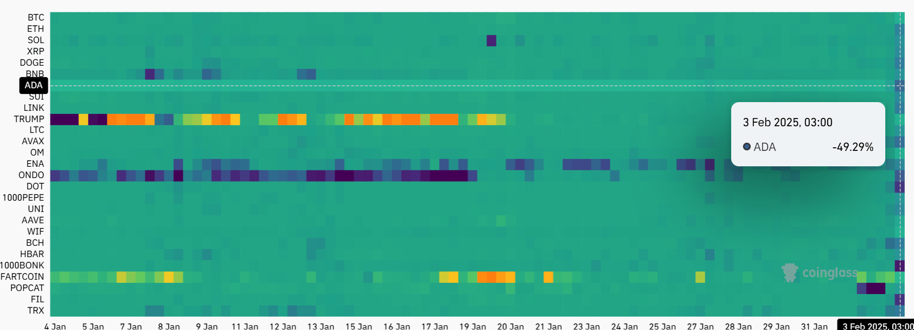 - Cardano’s Funding Rates have dropped to -49%, marking the lowest level in over a year.