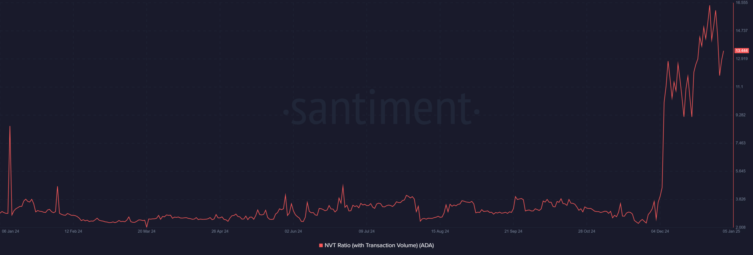 The NVT (Network Value to Transaction) ratio for Cardano highlighted a steady rise in transaction volume compared to its market cap. This increase indicates that ADA’s valuation is supported by robust network utility.