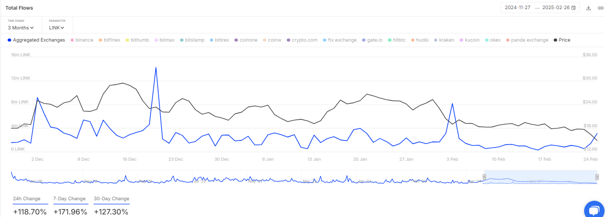 The total net flow for LINK revealed substantial exchange activity between the 17th of November and the 26th of February.