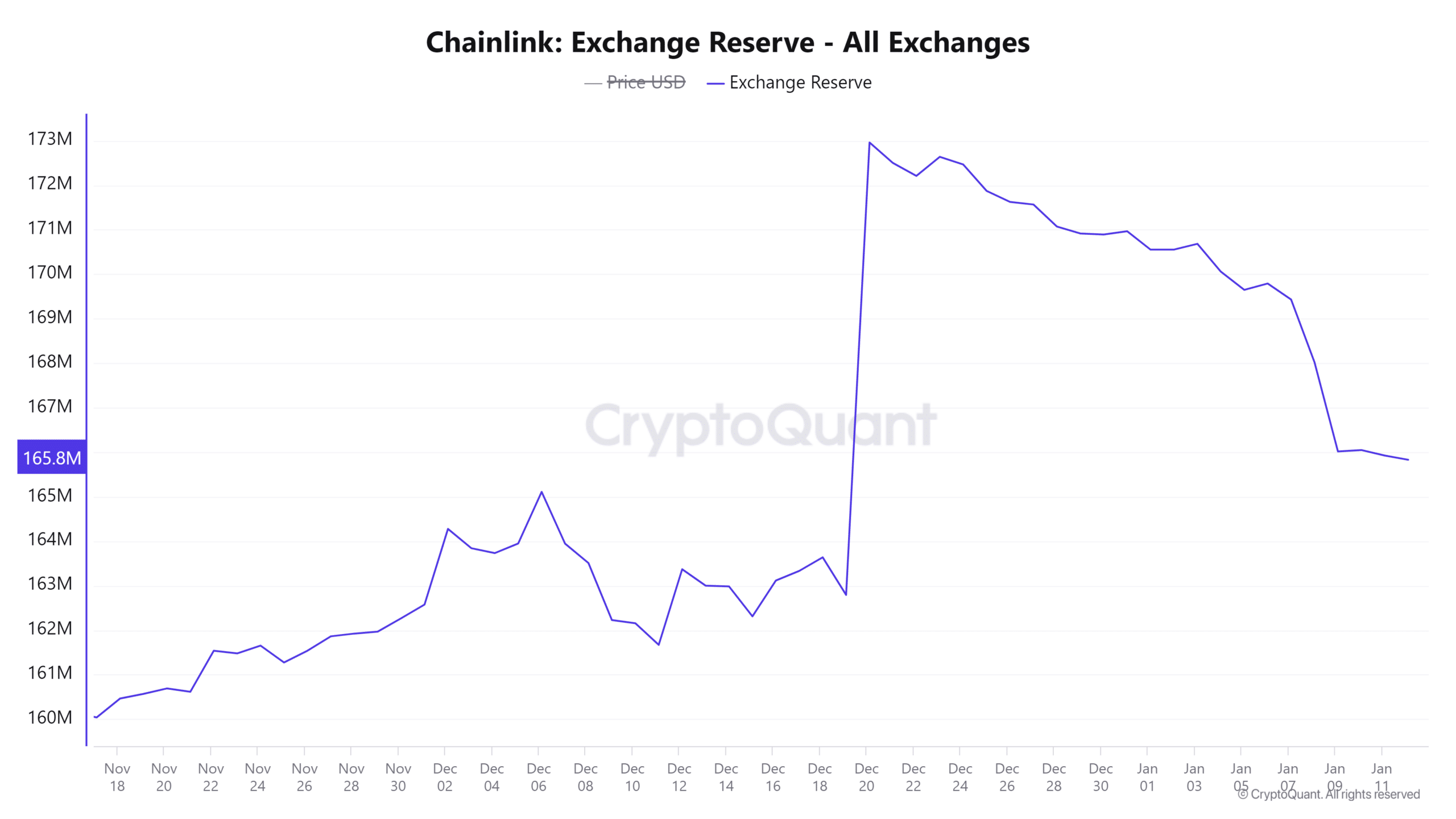 Moreover, the exchange reserves for LINK declined by 0.11% too, indicating reduced selling pressure as fewer tokens seemed to be held on exchanges.