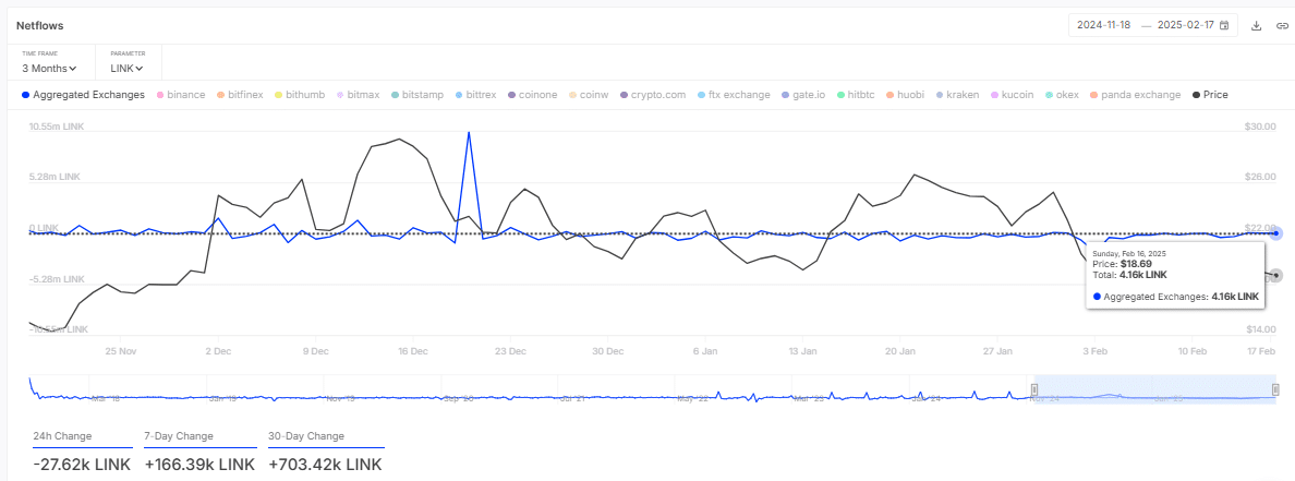 In particular, LINK has seen a notable increase in inflows of 703.42K LINK over the past 30 days.