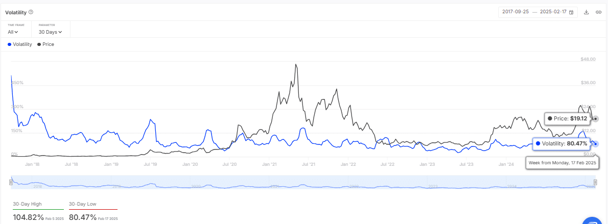 - The volatility chart revealed that LINK has seen a substantial decrease in volatility, sitting at 80.47%.