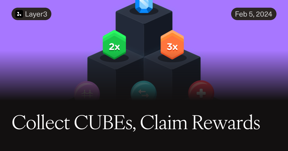Beginning with in-platform perks and token rewards, CUBEs will enable expansive utility. Soon, CUBEs will unlock key features on Layer3 as well as projects beyond (i.e. beta access to new DEXes, reduced fees for active dapp users, etc.). On our own path to decentralization, CUBEs are the key to bringing Layer3 fully onchain.