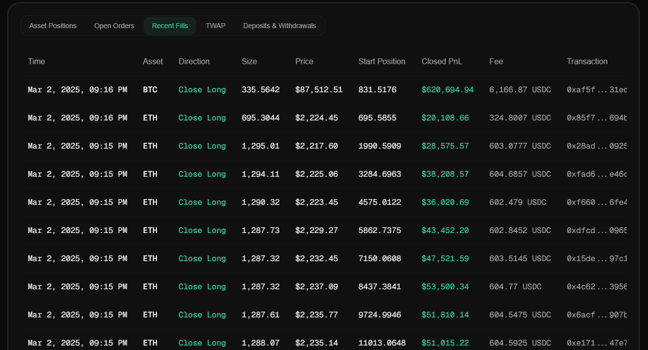 On 2nd of March, the trader placed their first Ethereum long position at 2:49 PM UTC. 35 minutes later, Trump announced Bitcoin and Ethereum’s inclusion in the U.S. Crypto Strategic Reserve.