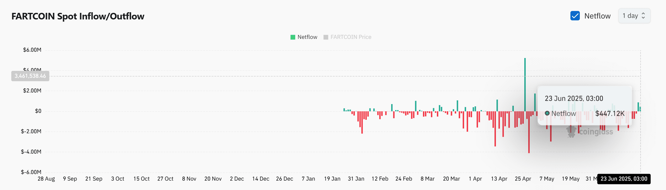 While the number isn’t large compared to historical flows, the change in direction is notable. It indicates that more investors are willing to acquire and hold FARTCOIN at current prices.