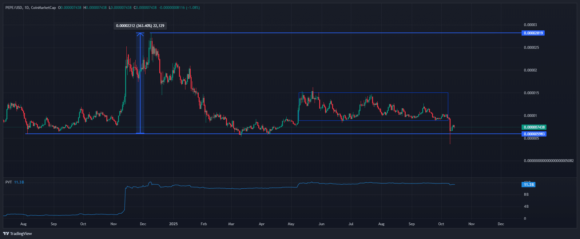 Although the Price Volume Trend showed signs of buyer momentum, PEPE’s price had been moving sideways since May.