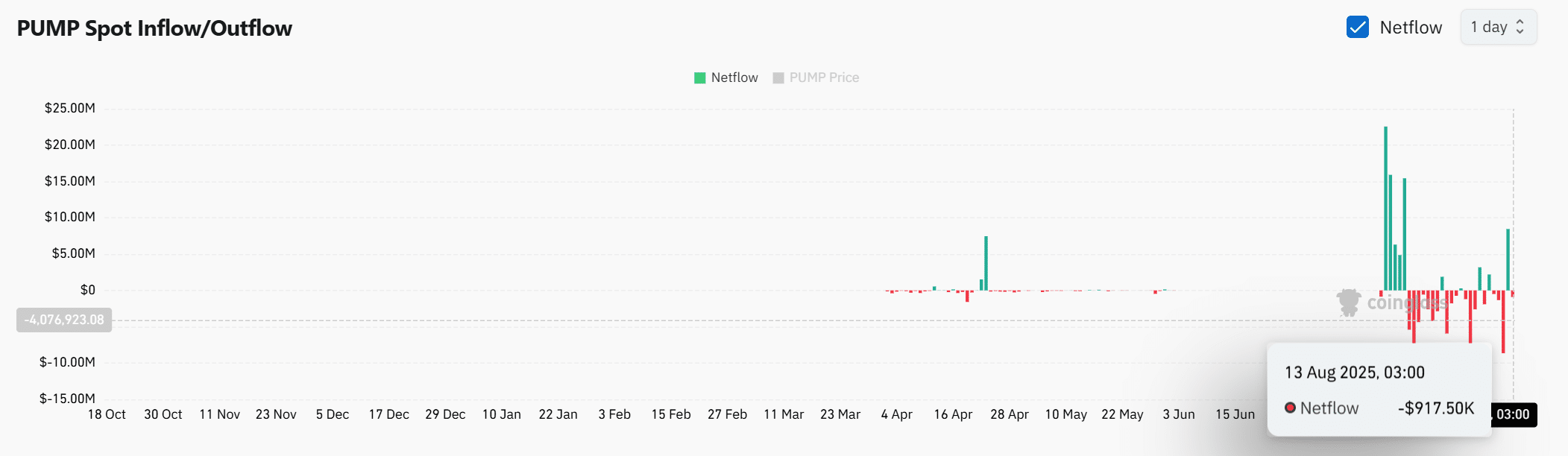 Spot Netflow data showed a $917.50K outflow on the 13th of August, meaning more PUMP left exchanges than entered.