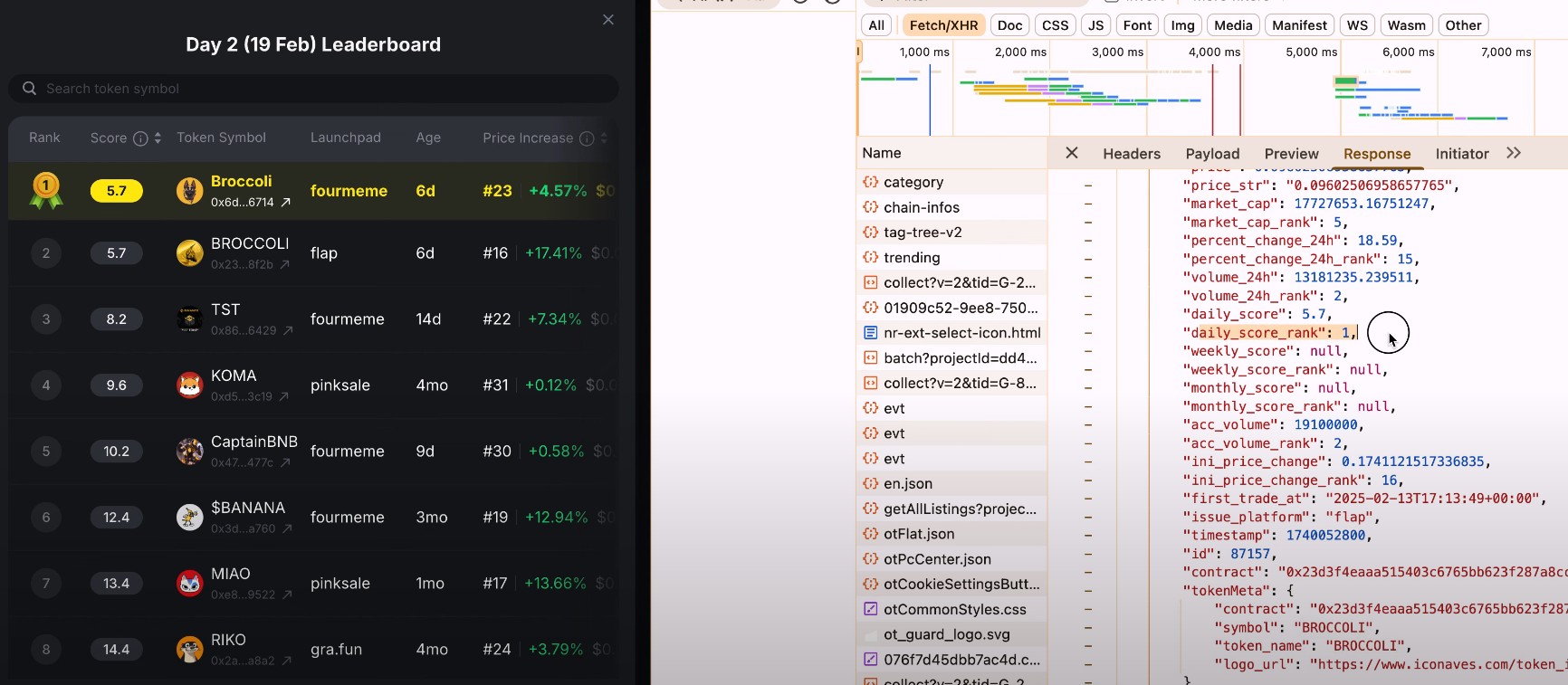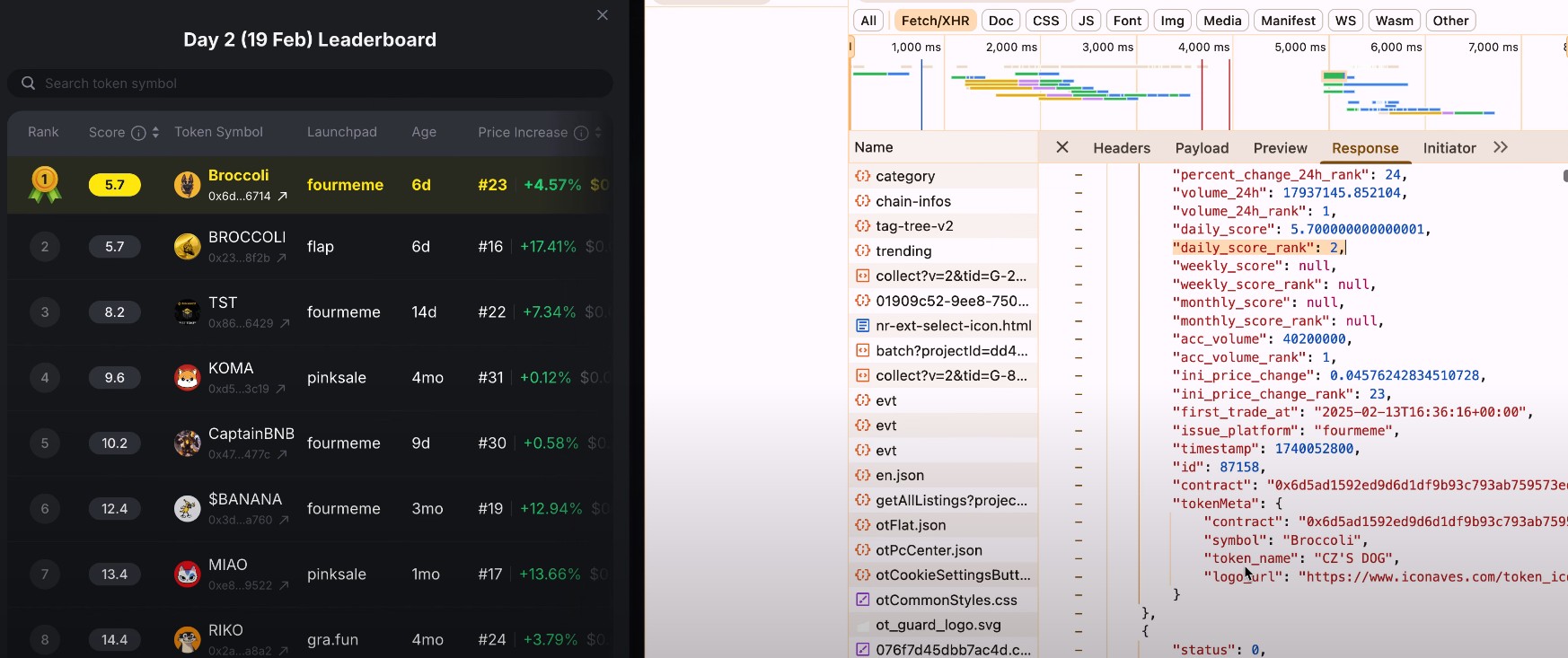 In a video posted by the F2B community viewing the back-end data, their “BROCCOLI” token, with a token symbol in all caps, ranked first in its calculated daily score.