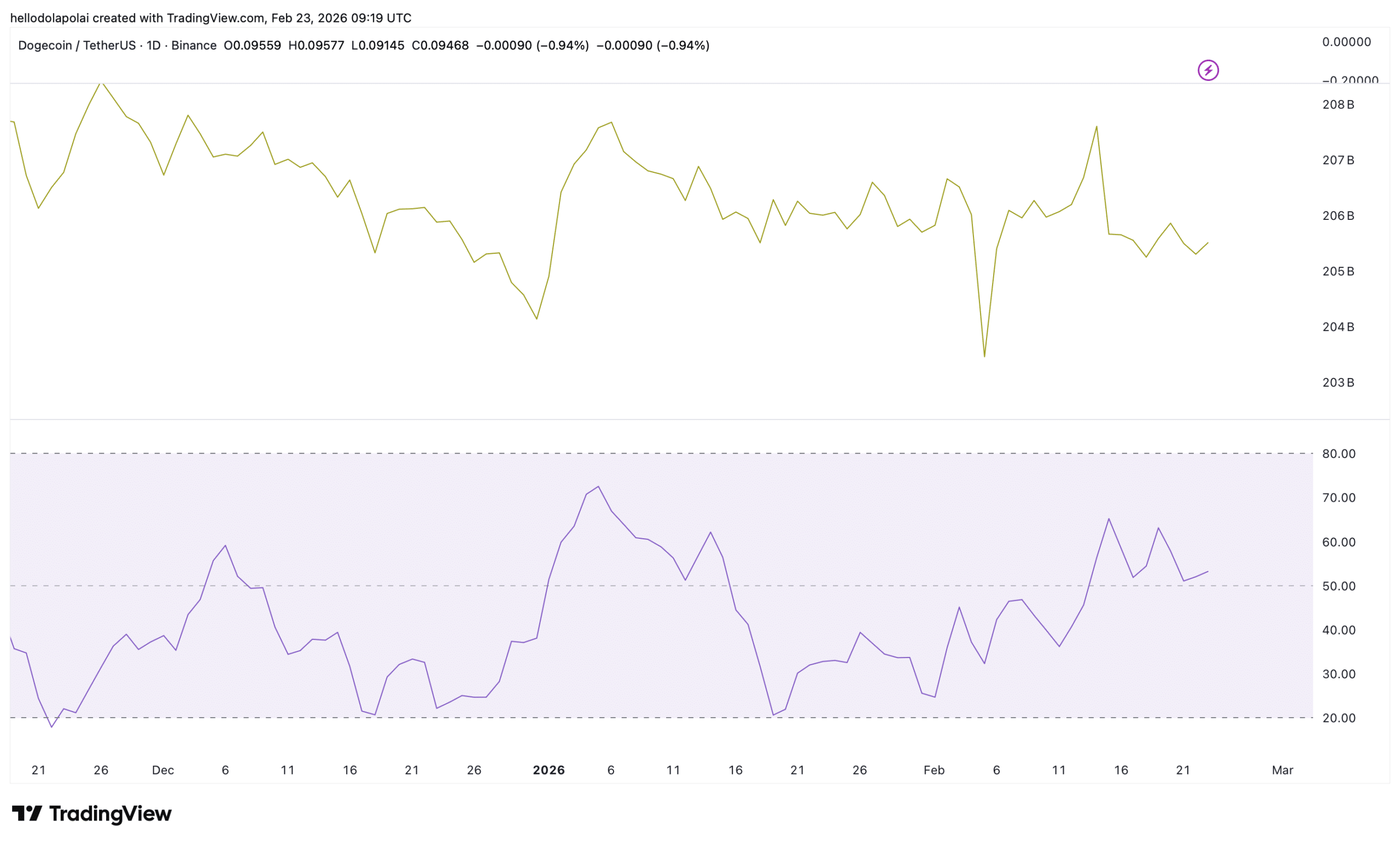 To determine whether capital is actively rotating back into DOGE, the Accumulation/Distribution (A/D) indicator on the daily timeframe provides additional clarity.