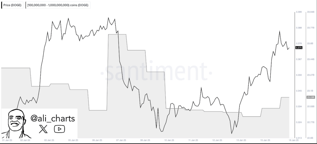 Whales—that is, large holders of a cryptocurrency—are very much behind the recent momentum seen in Dogecoin. Some 200 million DOGE accumulated by the whales is a major confidence indicator for the asset, and such actions often precede a price rally because whales generally know the market in and out.