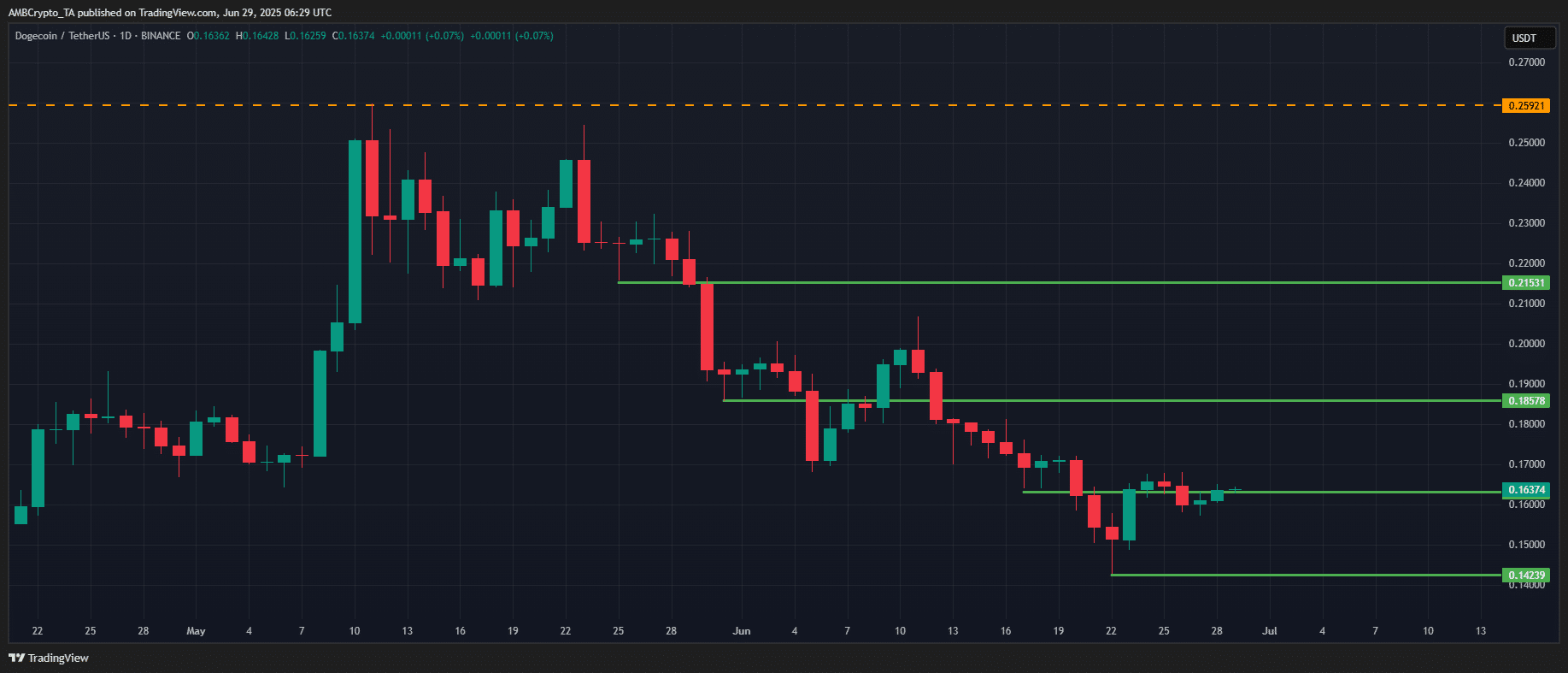 Notably, DOGE rebounded at the start of the final week of Q2, bouncing off a key support zone last tested in early April. This level could serve as a springboard for a push toward $0.20 if bulls regain momentum.
