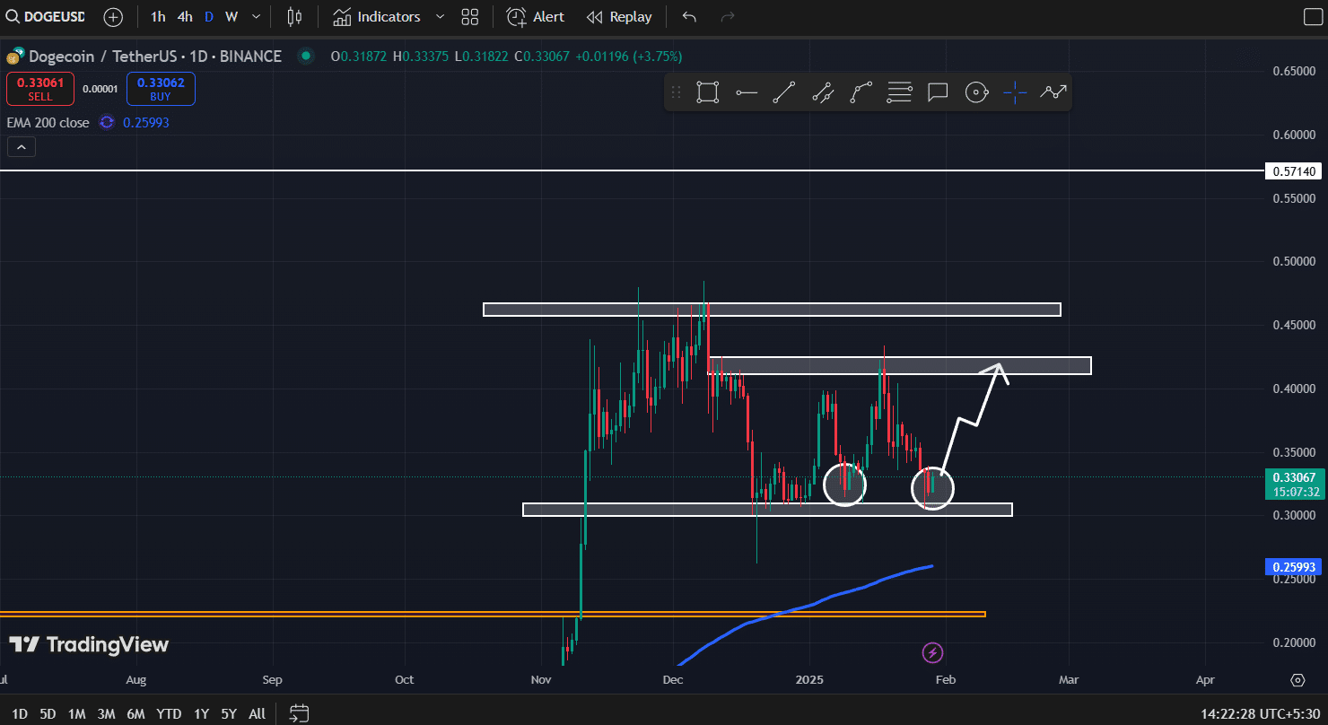 Based on recent price action, if DOGE holds above the $0.30 level, there is a strong possibility it could soar by 30% to reach $0.42 in the near future.