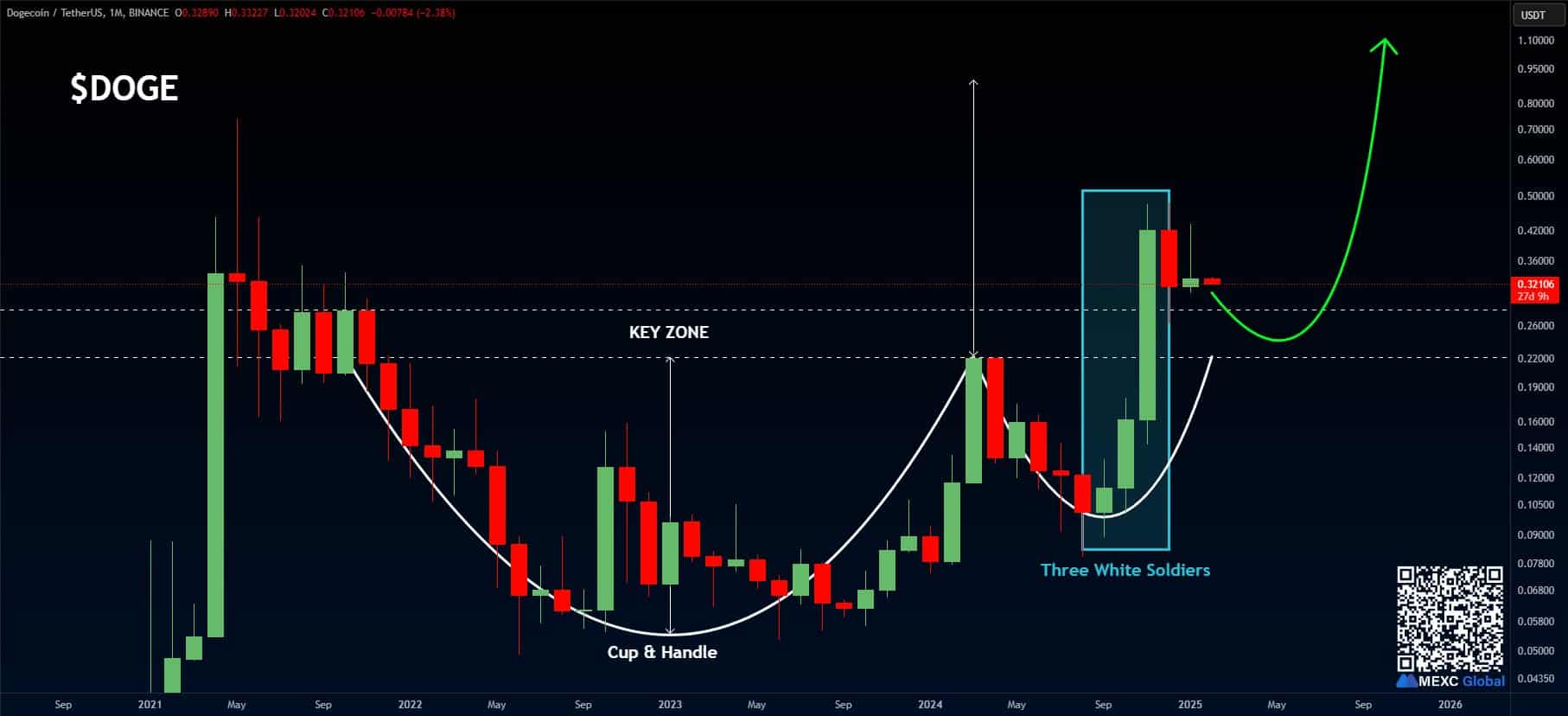 This pattern, often associated with long-term uptrends, suggests that DOGE could be on the verge of a major rally.