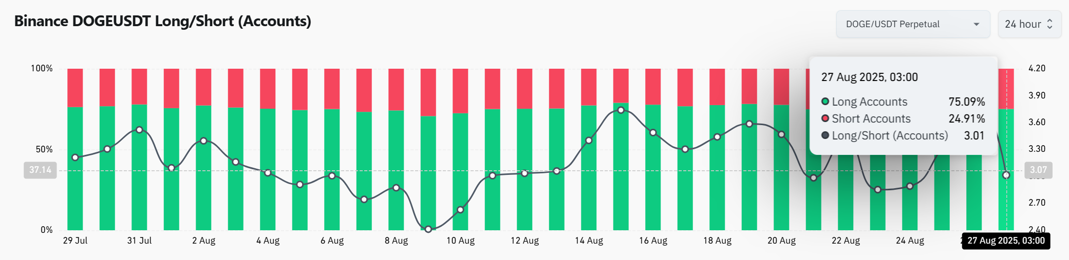 Market sentiment on Binance derivatives currently leans strongly bullish, with long accounts holding 75% dominance compared to just 25% short accounts.