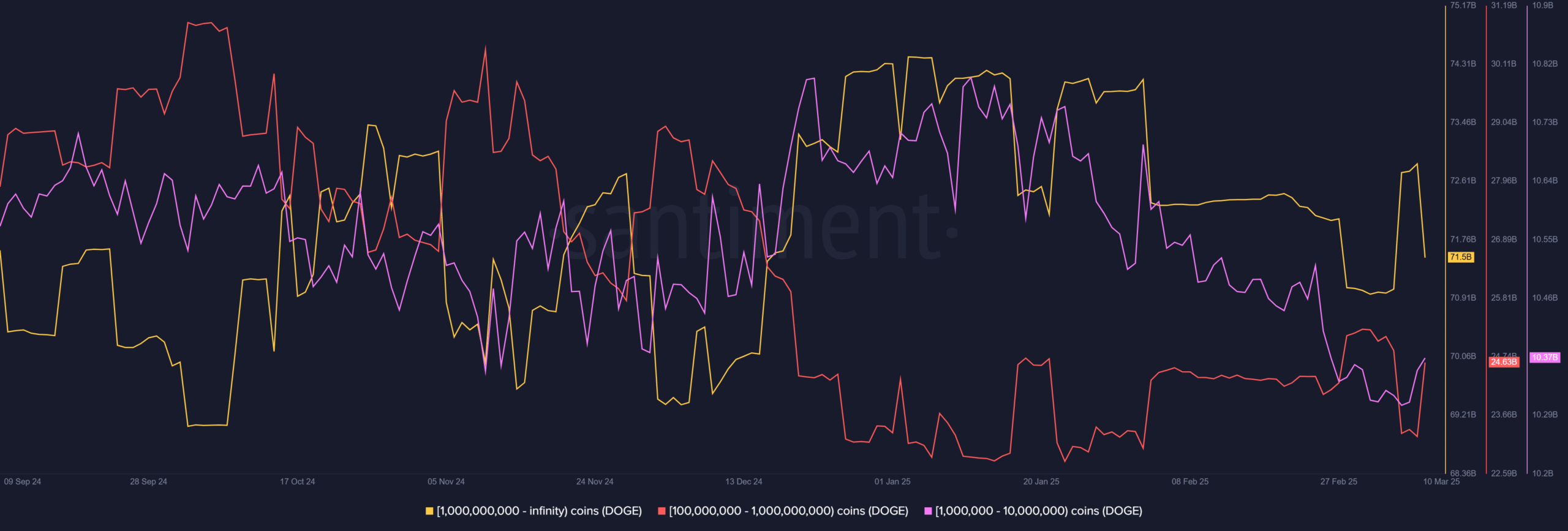 Notably, despite the largest whales accumulating 1.7 billion DOGE in the past 72 hours, price action has remained weak. Instead of stabilizing, DOGE extended its decline by another 3%.