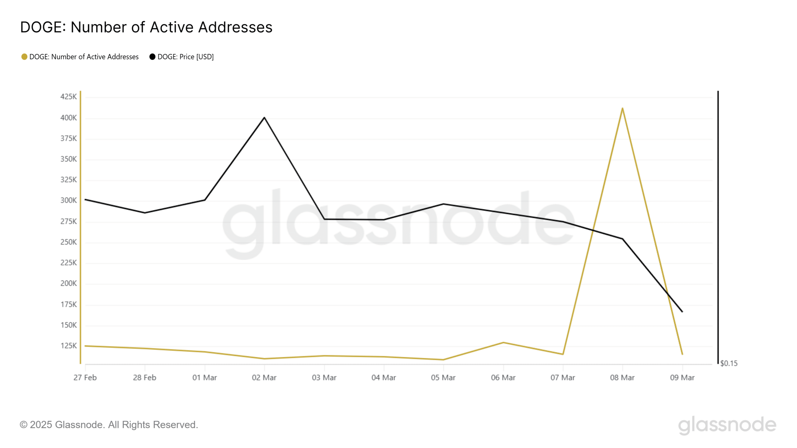 But can it hold? Active addresses spiked fourfold to 412,319 before retracing to 114,960, reflecting a decline in retail participation.