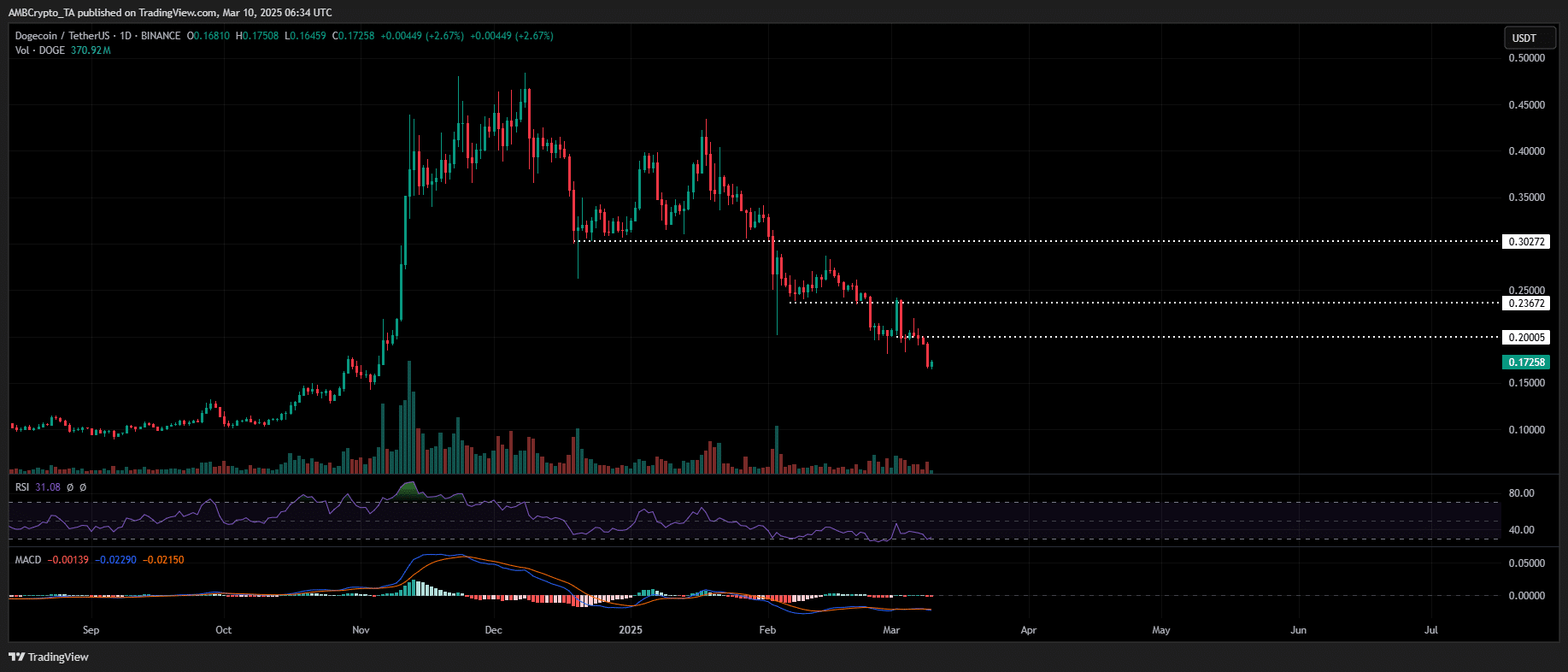 Dogecoin [DOGE], the sector’s leader, has lost its key $0.20 support, dropping 8.57%, with analysts now eyeing $0.16 as the next critical level.