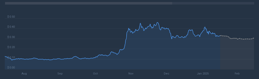 For Dogecoin to accomplish this goal at its present price of $0.3315, its value would have to increase by around 28%.