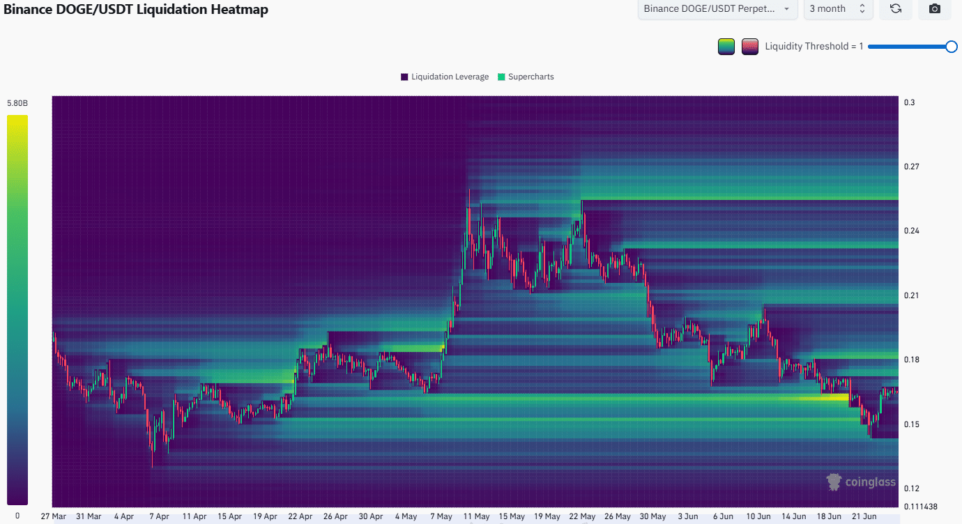 The 3-month liquidation heatmap showed that the pocket of liquidity from $0.145-$0.162 has been swept.